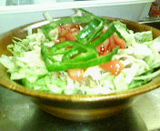 レタスをのっけーの、トマトをのっけーの、ハラペーニョのタバスコをぶっかけーの、